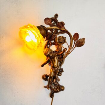 • duplicate - French Cherub Wall Sconce – Putti Light Fixture with Crystal Shade, Baroque Angel Decor