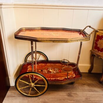 • duplicate - Italian Marquetry Bar Cart – 1960s Hollywood Regency Rolling Tea Trolley