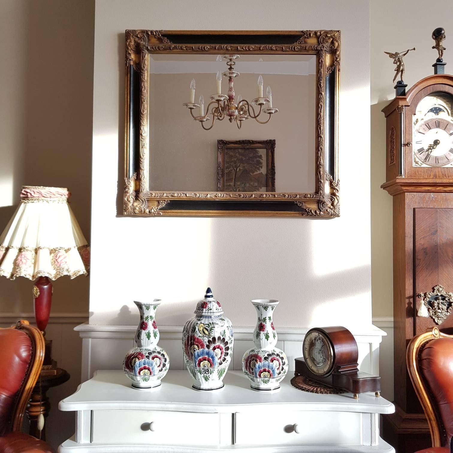 A striking trio of hand-painted Delft Polychrome vases brings a touch of old-world artistry to any space. With their vivid colors and traditional motifs, these ceramic pieces offer both charm and character, whether displayed together or styled individually.