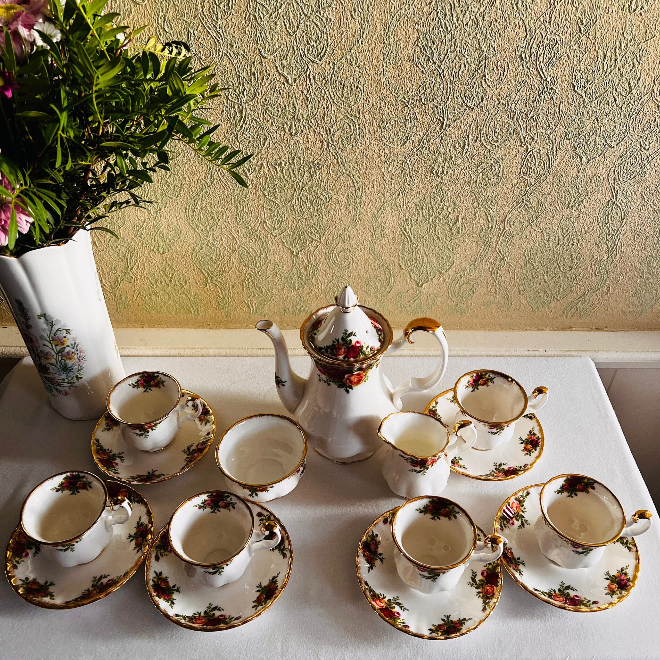 Bone China Espresso Set by Royal Albert, Old Country Roses, 1960s Mokka Coffee Service, Floral Tea Party Gift, Made in England