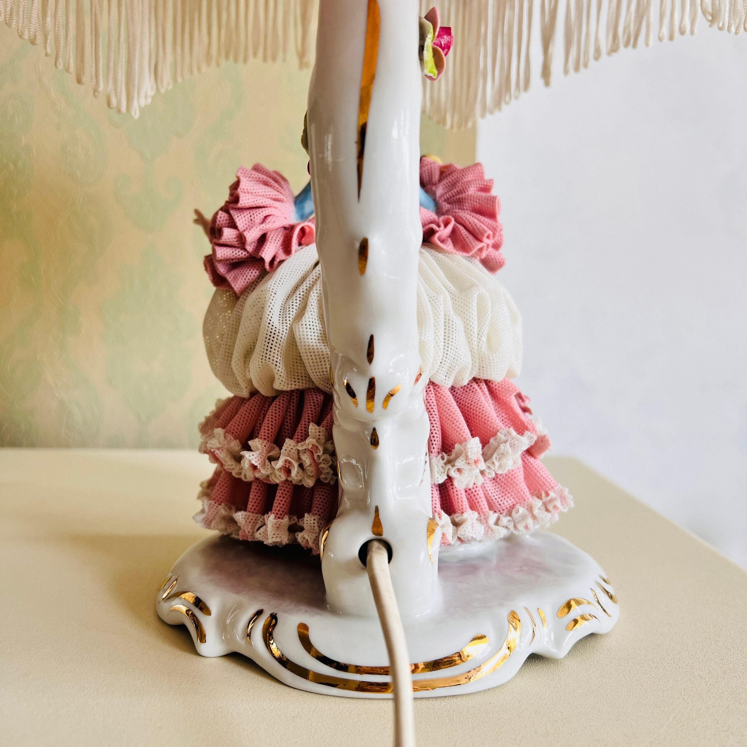 • porcelain base with lace detailing and figurine