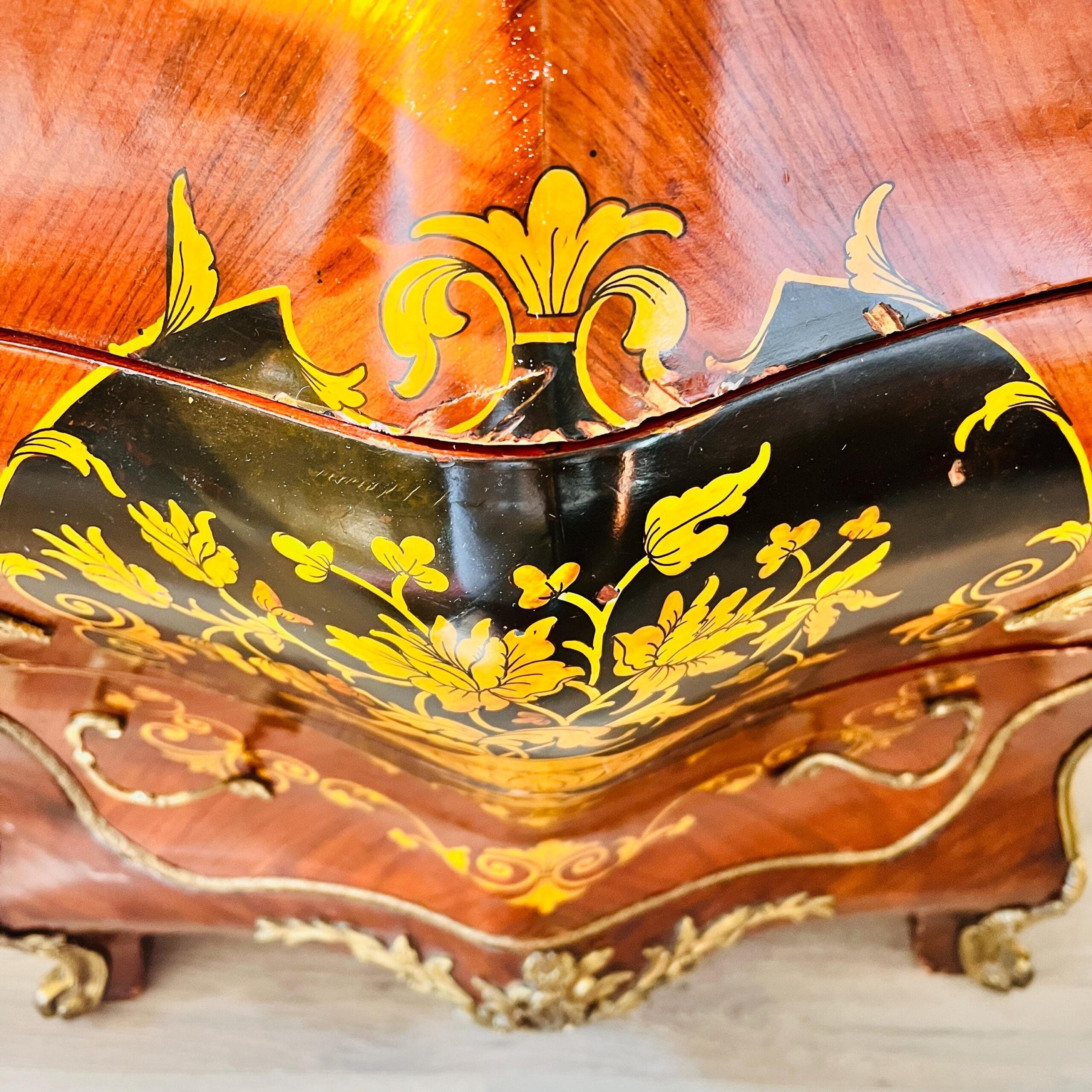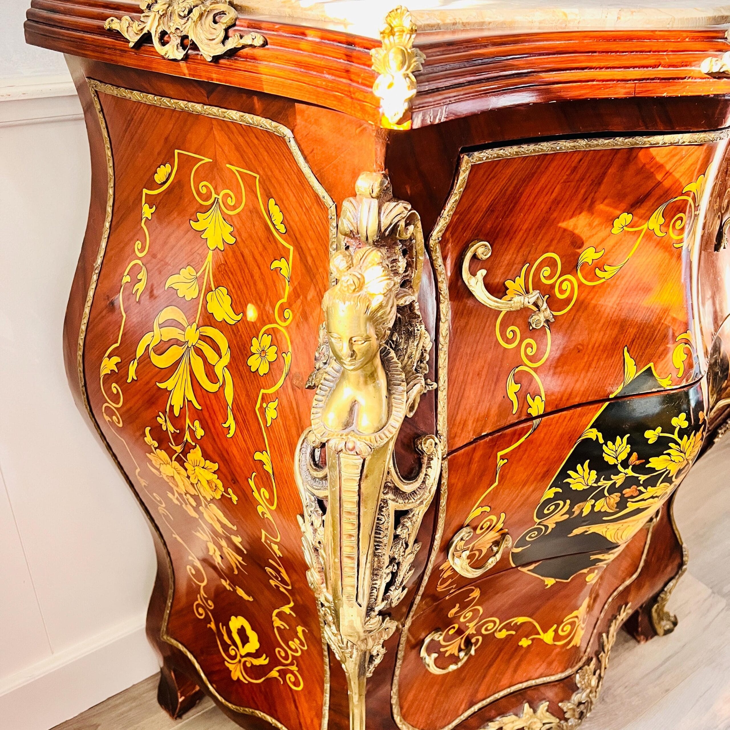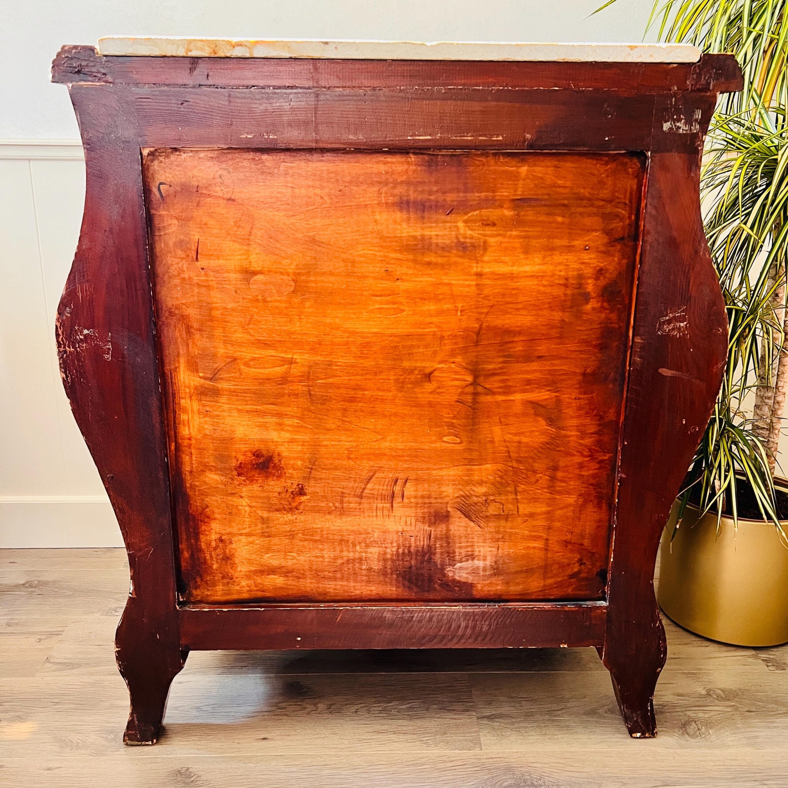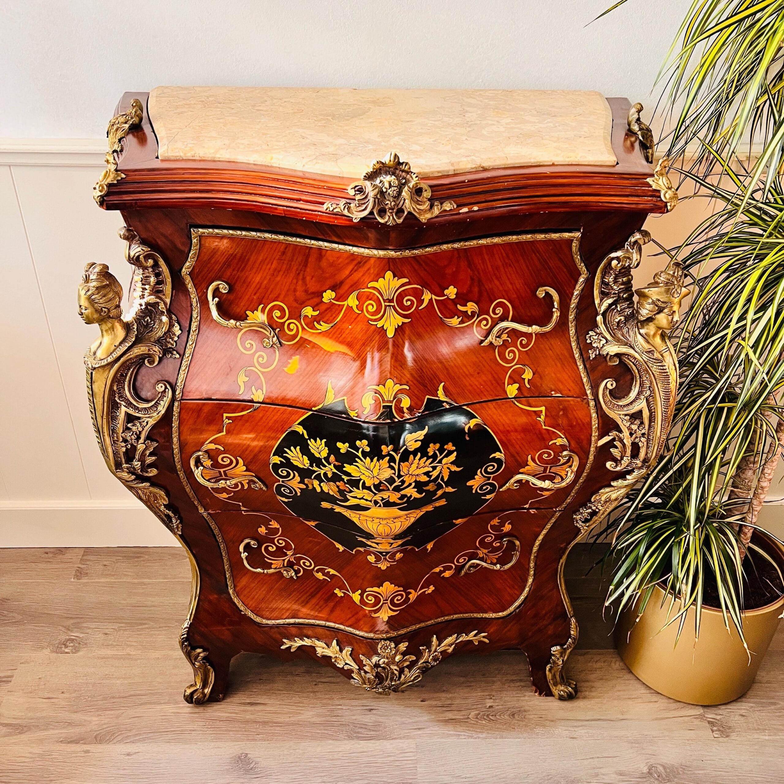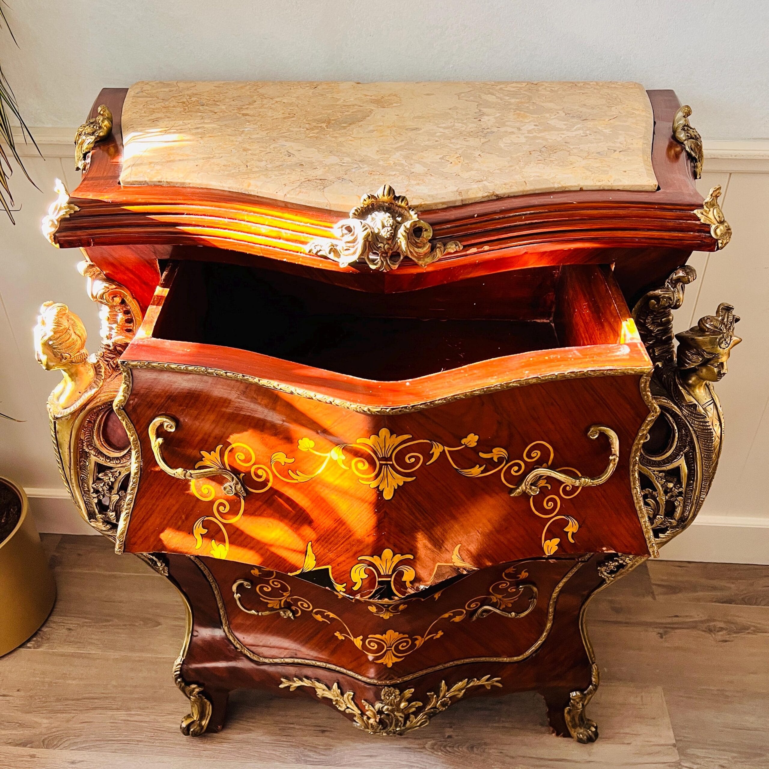 French Louis XV Style Cabinet with Marble Top – Antique Rococo Storage Furniture for Elegant Vintage Home Decor